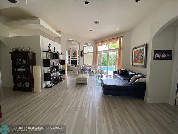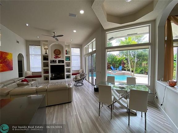 Excellent Location! Enjoy Weston living from this stunning Oak Ridge home. 5 BD 3 BTH pool home with 3 car garage, 1 story home, split plan, very open and bright, upgraded gourmet kitchen with black appliances, crystal grey backsplash, quartz countertop, white modern cabinets, upgraded laminate grey flooring in the living area. Accordion shutters, glass door entrance, built in wall unit in the family room, solar panels for water heating of the house. New updated appliances, Upgraded lighting fixtures in the kitchen and dining room. Cabana bath, lush lawnscaping. Out door kitchen, house is wired for surround and tv outside. Outmated door lock and washer/dryer. Best school district.