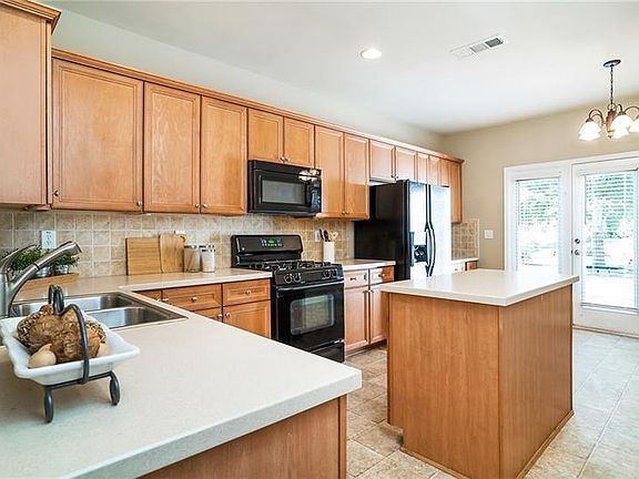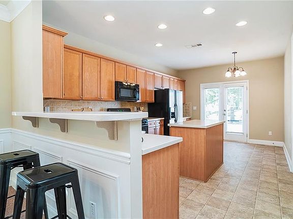 - Kitchen Features: Breakfast Bar, Cabinets Stain, Pantry, Eat-in Kitchen, Solid Surface Counters, View to Family Room, Kitchen Island