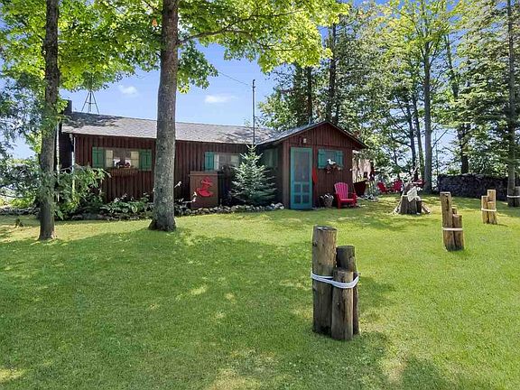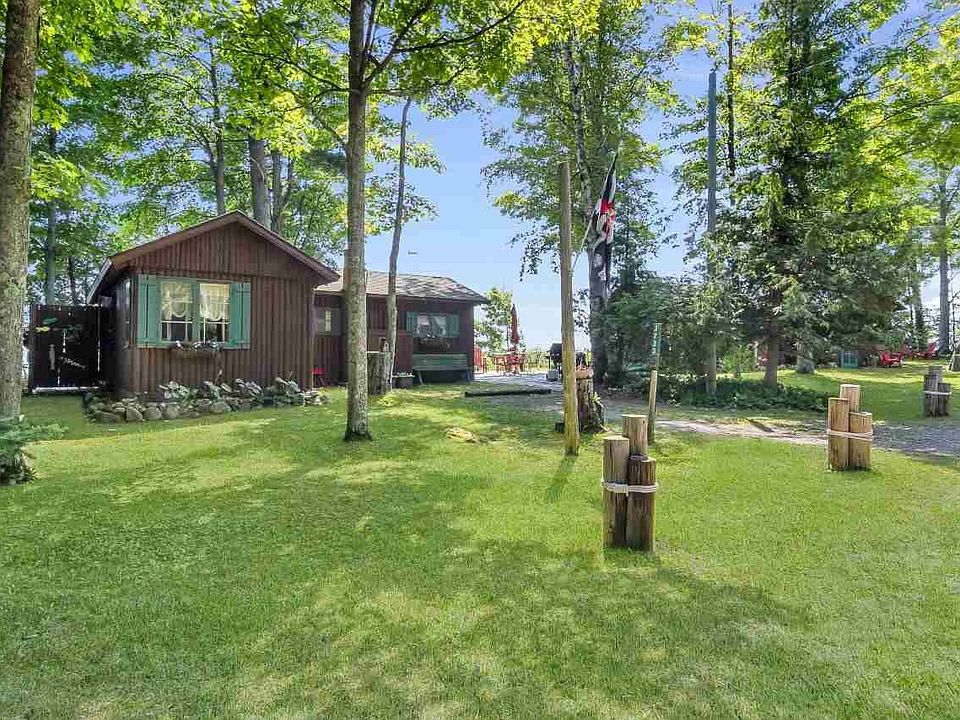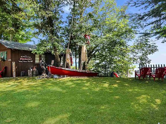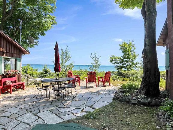 2 charming, fairytale cabins perched in the breeze on 143 feet of desirable south facing West Bay. See the fireworks in Traverse City, watch the Blue Angels and Thunderbirds, and of course the stars! The Mermaid cabin has one bedroom a full bath, living room with a sleeper sofa in an open kitchen-dining-living area. The Cherry cabin features new tile floors, 2 bedrooms, a 3/4 bath, outdoor shower, and an open kitchen-dining-living space. The two cabins are connected by a lovely flagstone patio overlooking the Bay. Updates include new bathroom, outdoor shower, flagstone patio, new roofs in 2005, new floors, water softener, new furniture and some new appliances. Looking for a beach? Normally (when the water levels return to normal) this property does have a small sandy beach, but Hendryx park has a lovely beach and is just a 2 minute walk down the road! The lot across the road is over 800' feet deep and is buildable. Live in one cabin while you build your dream house! This could be a fabulous income stream if used as a rental. Property is being sold turn-key/ furnished with some exceptions.