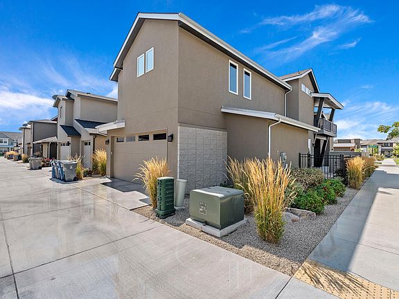 2018 Parade Home in Harris Ranch on a premier corner lot facing the common area. Flexible floor plan with primary bedroom and two additional bedrooms up and 4th bedroom/office and full bath down. Fantastic primary suite with sitting area, spa-like bath, and balcony overlooking the foothills. Main level is an entertainer's dream with a spacious, light-infused great room, large kitchen island, built-in bar, and private patio. Finished 2-car garage includes a 7 ft x 17 ft work area. Just a few blocks from the Boise River and Greenbelt, this masterly crafted home exudes a warm, modern vibe you're sure to love! Offered unfurnished. Bosch dishwasher, oven, microwave & Thermador 6-burner gas range. Main-level patio w/ privacy wall fencing. Landlord pays S/W/T; tenant pays Electricity and Gas. One small to medium, non-shedding and house-broken dog allowed with a pet deposit and additional monthly pet rent. Home is currently staged, but is being offered unfurnished. Refrigerator and new W/D included.