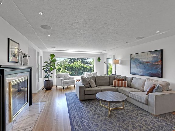 Style and substance unite at this meticulously maintained Bridlemile Mid-Century. Thoughtfully updated to preserve classic 1950s features, this property is loaded with warm, quality finishes throughout. Extensive hardwood floors, fireplaces, Schoolhouse Electric fixtures and walls of windows that fill the home with natural light and showcase the territorial views. KITCHEN updates include custom rift sawn White Oak cabinets, hardwood floors, Quartz counters and smart appliances with induction cooking. The main floor includes the charming DINING ROOM that opens to the kitchen with a two-sided fireplace which seamlessly connects to the large LIVING ROOM. Additionally, there are two generously-sized BEDROOMS, a remodeled bathroom and the PRIMARY SUITE which features double closets. The bright lower level offers flexible spaces with a GUEST SUITE, cozy BONUS ROOM with a fireplace for games and gatherings, a home GYM space and so much STORAGE! Entertain on warm summer days in the fully fenced back YARD with mature landscaping, patio, firepit, hot tub and raised garden beds. Tucked away, desirable location with easy access to downtown and highly rated Bridlemile Elementary. [Home Energy Score = 5. HES Report at https://rpt.greenbuildingregistry.com/hes/OR10134160]