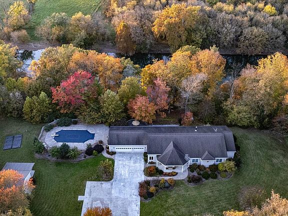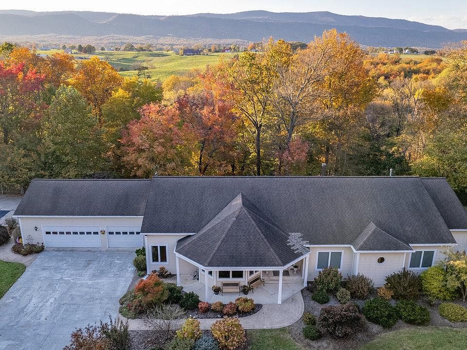 Nestled on 5.27 private acres at the end of a scenic, tree-lined driveway, this stunning one-level home offers 4 bedrooms, 3 full baths, and 2 half baths including exceptional riverfront living with breathtaking Massanutten Peak views. Designed for comfort and elegance, it features two master suites, a Jack and Jill bathroom, vaulted ceilings, crown molding, and recessed lighting throughout. The gourmet kitchen boasts maple cabinets, granite countertops, and seamless flow to the living, family, and dining rooms. Highlights include a Tulikivi fireplace, built-in shelving, laminate flooring, and a luxurious master suite with a sunken jacuzzi tub. Each bedroom includes a ceiling fan and walk-in closet for convenience. Outside, enjoy an in-ground pool, a 24' x 24' barn with electric, mature landscaping with drip irrigation, and a 3-car attached garage with a concrete parking pad. With a seller owned propane tank, Culligan water softener system, high-speed internet, and a stunning 330’ of river frontage, this property offers modern amenities and serene seclusion. A true retreat combining privacy, luxury, and nature!