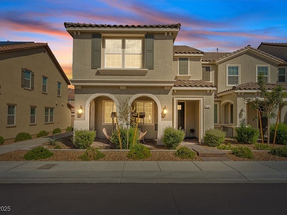 Surrounded by mountain views! 3 bedrooms + a loft, epoxy garage floors with extra space for a work bench or storage, a master bathroom size that will impress, and tons of natural light. Quartz countertops in the kitchen with a large island, backsplash, and brush stainless steel appliances. Tankless water heater with a soft water loop. Located near the Raiders training facility, shopping, dining, a brand new hospital, and near the major freeways. The Inspirada amenities include, swimming pools, parks, BBQ areas, trails, and dog parks. Owners spent approx $51K on upgrades when building this home and you only have 1 attached neighbor. This is a home that is a must see!