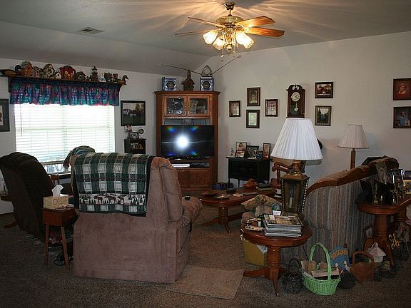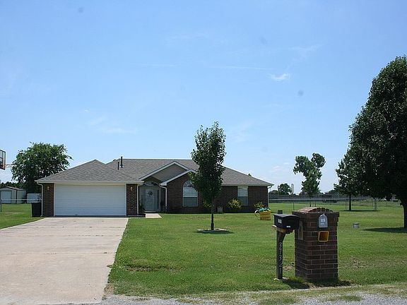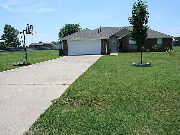 Location....Location...Location. Home is just off I-40 and 177. Home has large rooms with open floor plan. There is a large fenced lot 1.17 acres with covered patio, storm shelter, storage building, and it's own water well. Home could be great for entertaining with the open floor plan and the large fenced yard. Home has large closets and lots of storage.