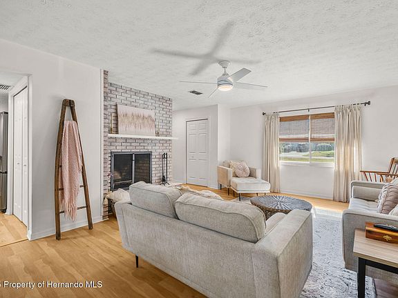 This home blends comfort with timeless southern style! Welcome to this inviting home nestled in the highly desirable Hickory Hill Acres. This beautifully maintained property offers 3 bedrooms, 2 baths, an oversized 2 car garage, and a newly screened-in pool lanai- perfect for enjoying Florida living year round. Step inside and feel as though you've walked into the pages of a Southern Living magazine. Newly installed LVP flooring flows throughout the entire home, and abundant storage ensures everything has its place. Kitchen features newer dark Stainless Steel LG appliances(2022) as well as a generous amount of cabinet & pantry space. The large Primary Suite easily accommodates king size furniture and features a recently remodeled en-suite bath, while 2 additional bedrooms provide comfortable options for family, guests, or a home office with a modern style common bath. The large living/dining room combination centers around a charming brick wood-burning fireplace- an ideal spot for gathering, while an oversized laundry/utility room adds convenience & more storage. Stay cool on hot summer days in your private pool or make the most of the covered outdoor area, perfect for a future summer kitchen or bar setup. The expansive, fenced back yard with shed offers endless possibilities for outdoor living & hobbies. Notable upgrades include a SimpliSafe Security & Fire System, Newer hot water heater(2022), new pool pump(2022), new LVP flooring(2022), new screened pool lanai with pet screen(2023), & new drain field(2022). Other perks include NO HOA, NO CDD, & FLOOD ZONE X as well as convenience for easy commuting to I-75 and local hospitals & shopping. Don't miss the chance to own this charming, well-appointed home in one of the area's most sought-after neighborhoods!