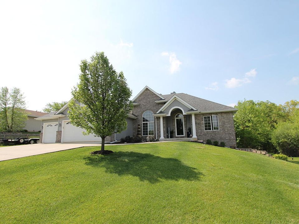 Gorgeous 3 bdrm, 2 ba ranch sitting on almost an acre w/3 car attached heated garage & addtl 1 car detached. Living room features dual sided stone fireplace w/morning room on the other side off of open concept kitchen w/stainless steel appliances. Beautiful wood floors throughout, 6 panel doors, & tray ceilings. Spacious Master Bedroom Suite has walk in closet, sliding doors to deck, walk in shower & deep jetted tub. Partially finished LL rec room w/walkout & full sized windows. Fenced wooded yard with a creek running thru it. A must see!