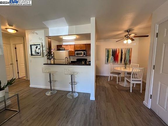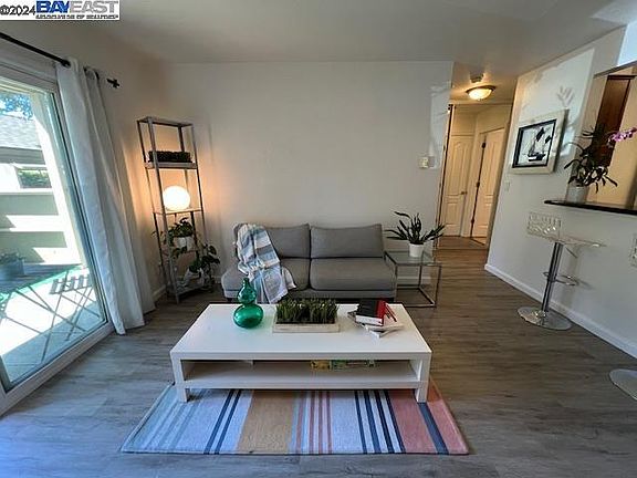 Here's a great chance to own an affordable, move-in ready gem in a well-maintained complex! This updated 1-bedroom, 1-bathroom unit features newer wood laminate flooring and fresh paint throughout. The kitchen offers cabinets with elegant granite countertops. Enjoy meals in the cozy dining area, at the breakfast bar, or on the patio with beautiful views. Newer double pane windows and patio door. Baywood Villas offers some of Fremont's lowest HOA fees while providing amenities like a pool, hot tub, fitness center, and conference/party room. Families will love the playgrounds and convenient laundry facilities, and everyone benefits from included water and garbage services. Perfectly located, you're under 5 minutes from Whole Foods, Raley’s, great coffee shops, and diverse dining options. Nearby are the Fremont Library, Washington and Kaiser Hospitals, plus recreational spots like Central Park with water slides, Lake Elizabeth, the Fremont Sports Complex, and the scenic Alameda Creek trail with lagoons. Don't miss out on this blend of affordability, convenience, and lifestyle in the heart of Fremont!