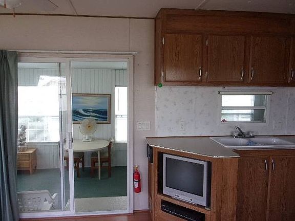 Located in a 55+ Community on leased land. This is a great Winter Getaway! 40 ' long furnished 1 Bedroom 1 Bath home with updated laminate flooring throughout and lots of storage in the kitchen and bedroom. An attached Florida Room adds lots more living area and even has an extra room with a bed in the back for guests. Double car driveway and AMS roof-over are extras! Motivated Sellers!