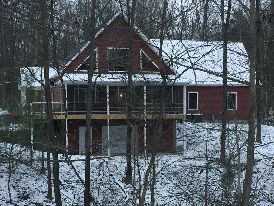 Beautiful custom built home in 2015 with beautiful views and wildlife on 8.69 acres. Open concept, great room with high vaulted ceiling, 60 inch linear gas fireplace and large windows. Amish built custom cabinets and granite counter tops in kitchen and all 3 bathrooms. Wood flooring throughout home except tile in bathrooms and laundry room. Everything is upgraded. Master suit main floor with large WIC, custom tile shower with raindrop shower head and jets, soaking tub and enclosed toilet. Door from master walks out to patio and hot tub. Enclosed, covered screened in porch. Small pond in front of house and large lake in back of property with floating dock in private setting. Two separate heating and air units that control upstairs and downstairs, tankless water heater. House built new in 2015. Upstairs with two bedrooms, loft space and double sink bathroom perfect for teenager space. Lots of upstairs storage as well. Walkout unfinished basement with garage opening for UTV storage but does have heating and air so could be finished at later date. Not like any other house on the market! Close to Newburgh yet secluded wooded setting and private with acreage.
