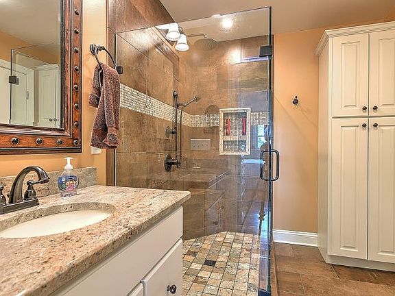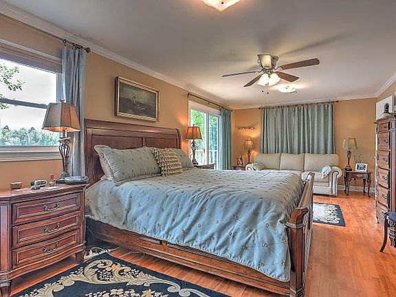 Lakefront. Completely Updated! Four Bedroom, 3 On Suite. Two have lakeview shared balcony. Living area open to Sunroom and Outside Deck area. New Swimming Dock. Boat House has Electric Boat Lift and Manual personal water craft lift.