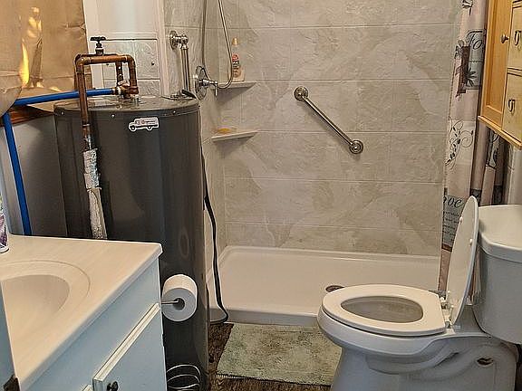 Large one bedroom home perfect for 1 or two people. Appliances as well as full size bed, dressers, sofa, washer/dryer, kitchen table, TV, TV stand, yard tools go with the house. Doesn't take much to run the house in utilities. Very reasonable. House had extra 8 ft added on in 2015 or 2016. Luxury vinyl plank, Walk-in shower & pantry added. New wall AC/heaters installed. Kitchen utensils, pots/pans stay with house. Plenty of outside storage. Carport has storage as well as detached building. Property line comes right next to propane tank.