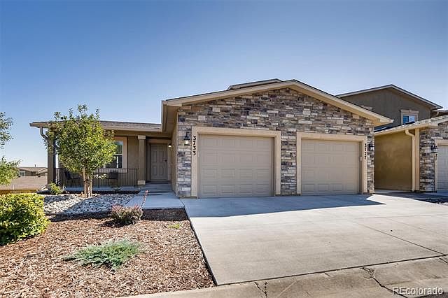 Welcome home to this gently lived in 2016 newly constructed home! Gorgeous spacious main level living in this end unit home. Spectacular views to the east and expansive mountain views to the west. Ready to explore Homestead trail!? It is right out the front door! Close to everything: Center Point shopping center, Powers Corridor, Colorado Springs Airport, medical and employment centers. Come see your possibly new home today.