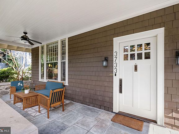 NEW LISTING. Open Sunday 1-4 observing local restrictions for social distancing & masks. Beguiling Arts & Crafts shingle bungalow with stone fireplace, heart of pine floors, custom woodwork & vintage details, 10 foot ceilings, and exceptionally beautiful windows. Superbly renovated to maintain the integrity of the American Craftsman tradition yet provide modern convenience. MAIN LEVEL ~ Welcoming entry foyer and through hallway. Spacious living room with impressive stone fireplace, beamed ceiling, built-in bookcases & wet bar. Recessed lighting throughout the house & period light fixtures.Dining room with wainscoting & window seat; door to front porch for ease of entertaining.Large kitchen has deep custom cabinetry & quartz counters.Family room with informal eating area, window seat, and door to patio & garage area.Homeowner bedroom suite includes excellent closets; its ADA en suite bathroom provides heated floors & towel racks.Powder room. Deep hall coat and linen closets. SECOND FLOOR Bedrooms 2 & 3. Bedroom 4 or home office. Full hall bathroom with heated floor. Huge space for potential bedroom 5. BASEMENT Big rec room and lots of storage. Custom water proofing system.Stylish wine cellar. Laundry room with custom built-ins, near party pantry area with extra fridge. Full bathroom. Door to rear patio & garage. EXTERIOR ~ Built in 1911, the house is enhanced by beautifully maintained mature landscaping and hardscape. Seating areas on the wide front porch and the rear patio provide retreats to enjoy the leafy surroundings.Garage parking for one with additional spaces in the driveway. Electric lift at back porch for wheelchair near garage side door.Ideal location near Metro and all the attractions of Chevy Chase on both Connecticut Avenue and Wisconsin Avenue at Friendship Heights.
