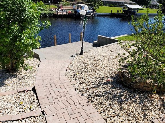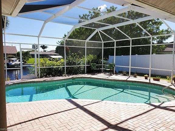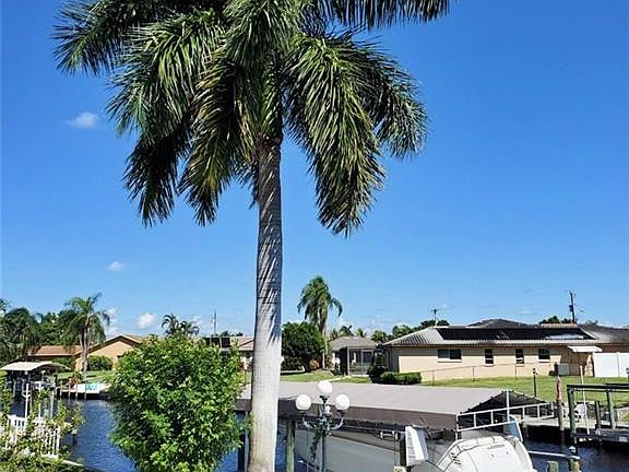Absolutely stunning! This 2,119 Sq ft 3 bed/2 bath home sits on an oversized gulf access lot that is tucked away to give you extra privacy and peace. A waterfront dream vacation home or a beautiful primary residence nestled away in a gorgeous and quiet neighborhood in the SE Cape. There are many happy memories to be made here. Catch dinner off your dock or enjoy an afternoon sunset cruise over to many of the waterfront restaurants with just a short boat ride to the river. This home is fully upgraded and features crown molding throughout, a custom kitchen equipped with Granite countertops, stainless steel appliances and pull out drawers in all lower cabinets. The large windows and sliders make for gorgeous views and natural light through out the home. In the spacious master suite are two walk in closets, a large walk in shower, a huge soaking tub, and dual sinks. The garage has built-in cabinetry and storage. Enjoy your solar heated SALT WATER pool and oversized paver lanai, perfect for entertaining! Your private dock has a covered boat lift. Relaxing by the pool, enjoying the water from the dock, or just taking in the views from inside, this home is truly the "Florida" experience!