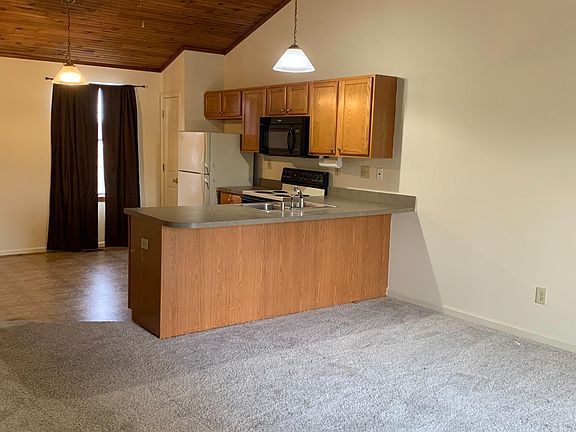 This beautiful split-level town home offers 2 bedrooms with a walk-in closet, 1.5 baths, a full size washer and dryer, and a one car garage. The top level reveals a spacious, open-floor plan, featuring a fully equipped kitchen, including microwave. Off the living room, sliding glass doors lead you onto a deck with a 3x3 storage unit. The ceilings are cathedral and made of a beautiful white pine. This home is all electric. 12 month lease resident responsible for utilities