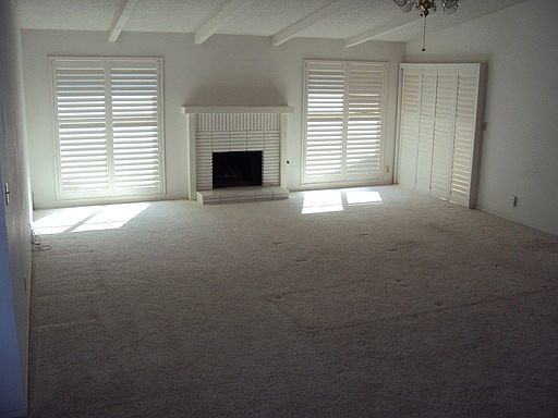Central heating/cooling, fireplace, refrigerator, electric stove, dishwasher, microwave, wood shutters, small patio, 2 car garage, common area gardener, community pool, water/trash/sewer paid, no pets allowed, 1 year lease.