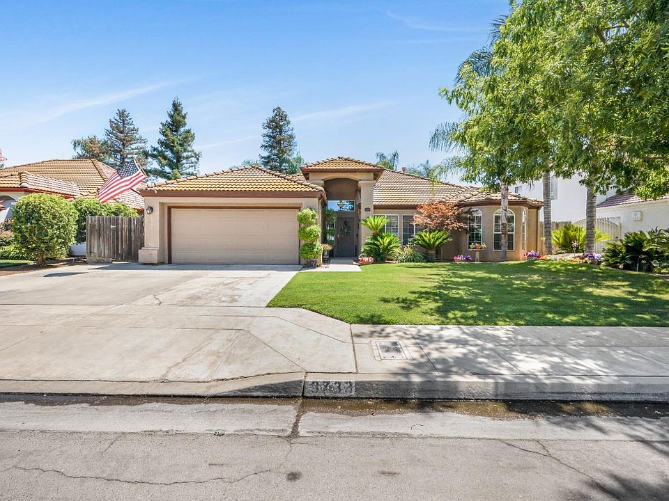 Charming Northwest Fresno home in pristine condition! As you enter, the great room welcomes you with stunning views of the sparkling blue pool and a cozy fireplace. The kitchen is a true showstopper, featuring beautiful granite countertops with raw edges and a spacious walk-in pantry. The bright eating area, filled with natural light, offers lovely views of the backyard. This home boasts three spacious bedrooms and two bathrooms. The master bedroom includes a private bathroom with an oval bathtub and his-and-her sinks. Step into the backyard oasis, perfect for entertaining with a large, shaded patio area, an outdoor kitchen, and a built-in firepit. All this, just a short distance from excellent shopping centers, restaurants, parks, and schools. Don't miss the opportunity to make this your new home. Schedule your appointment today!