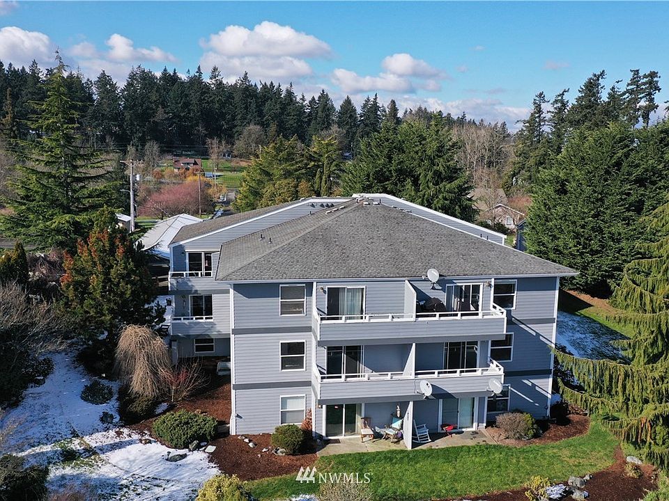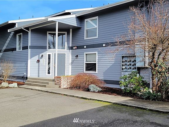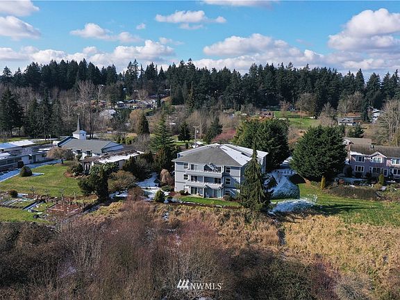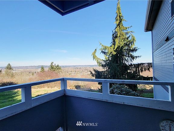Sweeping Mt. Rainier and Valley views from your living room and deck! Country living 5 minutes from Everything! Peaceful, private setting above greenbelt. Very Private Condo with Deck, on 1st floor. Small, secure, gated complex, only 8 units. Friendly inexpensive HOA & neighbors. Locked exterior access. Water, septic, garbage, lawn care, gated entry, hard-wired fire sprinkler system & repairs maintained by the HOA. Assigned parking sp #7 in covered carport w/add'l parking space for guests. Storage unit downstairs 8'x 6'x 8' included. All appliances stay. Pets welcome! Home is ready for you, just intsall your desired flooring. No Rental Cap! Come get this awesome, unique living opportunity!