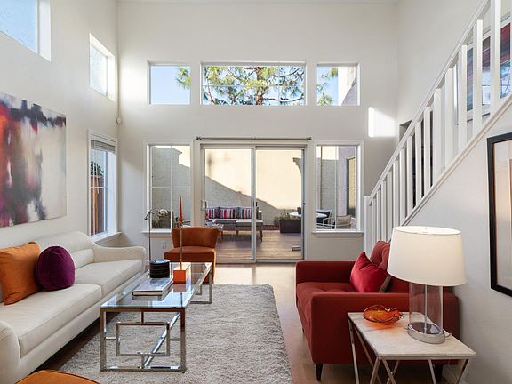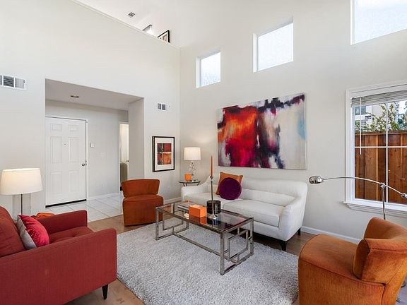 Light, bright, and airy home with high ceilings in the heart of Fremont. Formal entry opens to a tall two story living room lined with large windows and doubled up with clerestory windows above and a sliding door opening to an inviting patio ideal for entertaining. Generously proportioned kitchen boasts wood cabinets, granite countertops, and stainless steel appliances. The adjoining family room has large windows and is anchored by a gas burning fireplace. The stairway leads to an open loft area ideal for an office or play area. Two front bedrooms are served by a hall bath with a shower. The primary bedroom suite with vaulted ceiling has a large walk-in closet, and a primary bath with double sinks and a shower over tub. Attached two car garage. Other amenities include central air conditioning, wood floors, and laundry in the garage. Family friendly neighborhood and centrally located near schools, parks, shops, and entertainment. Easy commute options including 880 and ACE train.