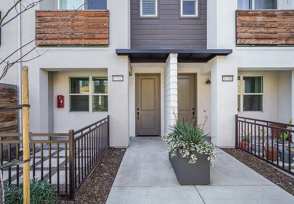 2017 BUILT. MODERN AND UPGRADED. CENTRALLY LOCATED - NEAR BART AND FREEWAYS. MOST DESIRED FEATURE - A BEDROOM AND FULL BATH ON THE MAIN LEVEL WITH KITCHEN AND LIVING ROOM. FRONT YARD. BALCONY. This beautifully built home by Pulte is a rare find. It has 2-car tandem garage, Low HOA of $288/mo, excellent location and good schools. This home has triple-pane windows to almost completely block outside noise. Recessed Lights, Ceiling Fans, Hunter Douglas Shutters, 6-months old Induction Cook Range, Closet organizers, Epoxy in the garage floor. Nice little front yard and a balcony. Please do not miss this rare opportunity.