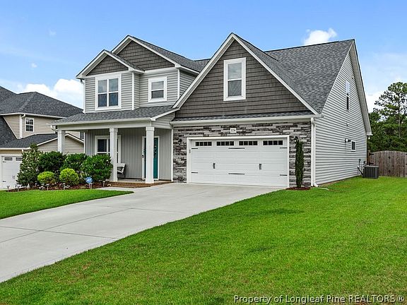 Do not miss this beautiful, well-maintained home in the highly desirable Stonegate neighborhood of North Fayetteville! This 4-bedroom, 2.5 bathroom home offers design upgrades to include stunning flooring, coiffed ceiling, wainscoting, and crown molding through the downstairs. The open concept offers both an eat-in kitchen and formal dining room which could be used as a flex space. The kitchen boasts stainless appliances, granite countertops over white cabinetry, a right-sized island and breakfast bar, and a butler's pantry to the dining room. The spacious owner's suite and laundry are downstairs with three additional bedrooms, a bathroom, and attic storage are upstairs! Enjoy outdoor life on the covered patio and huge fenced in backyard. Don't miss the tankless water heater and a variety of smarthome systems! You can't beat this location! Stonegate is located walking distance from schools, minutes from shopping and I-295, and less than 15 minutes from Fort Liberty.