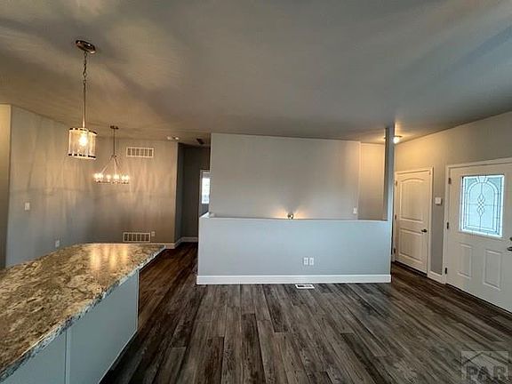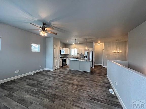 There are MANY reasons to choose this home over all the others in the area! Start with the homesite - it's at the end of the road and very private. No one is going to go speeding by. When you pull into the garage the first thing you notice is how big it is. Even though it's a two car it is an OVERSIZED two car garage with extra space to store more. As you step inside the home you will be impressed with the openness of the plan. The spacious living room leads back to the open kitchen with a large island that has a bar for informal dining and provides lots of additional cabinet and counter top space. The kitchen features upgraded Maytag stainless steel appliances which includes a flat top stove with a self cleaning oven, a built in microwave, a dishwasher and a side by side refrigerator with water and ice in the door and a pull out bottom freezer drawer. The primary bedroom features a 3/4 bath with a full size shower. There is also a spacious walk in closet with built in shelves. There are two more bedroom and a full hall bath on the main level. Downstairs is unfinished. It is a blank palette to do with as you please. Use it for storage (and lots of it) or finish it just the way you want. A full bath is already stubbed in to make it easier to finish. The laundry (with a Maytag washer and dryer included) is in the basement along with the tankless water heater (never run out of hot water) and the furnace. Step into the fenced backyard and enjoy the expansive mountain view.