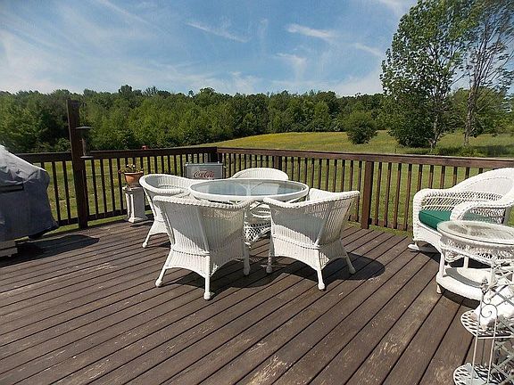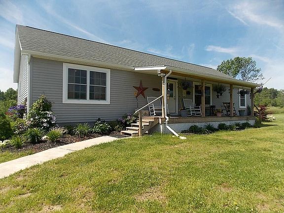 Great country property on 24 acres, half open and half wooded. Just 4 years old here, with 3 bedroom and a possible 4th on the lower level. Open concept living/dining/kitchen. Lower level walk out with man cave and pellet stove heating most of the house. High efficiency heat and central air. Enjoy abundant wildlife from the covered front porch or huge rear deck. Great hunting here. Permanent stairs to second level with expansion possibilities. Much larger than it appears! Gravel base ready for garage. Fenced fields include a 2 stall run in shed for horses.