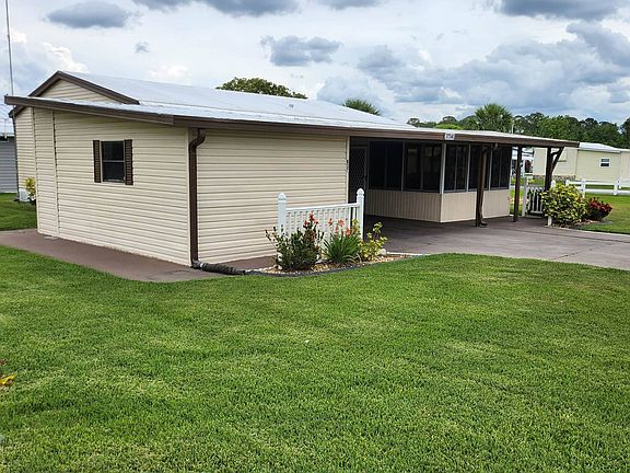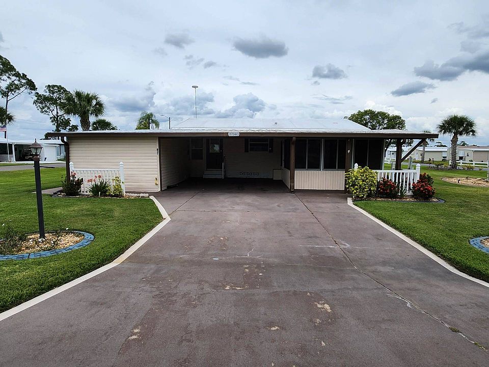 This is a 2 bedroom 2 bath furnished double wide with an attached Florida room. This home has central air throughout. The living area is carpeted and cozy, going into the bedrooms and the Florida room. The kitchen has newer cabinets and flooring. It also has a a dishwasher. The master bedroom currently has a queen bed with a walk in closet and an ensuite bathroom w/ easy step in shower. The second bedroom has a queen bed with a large closet. The second bathroom has a shower tub. The attached Florida room has an extra wall air for those warmer summer days. Outside it has a large double painted driveway w/ double carport. It also has an attached laundry / storage room. This home is located on a large corner lot, close to all the amenities. Wont last long, call today for more information!