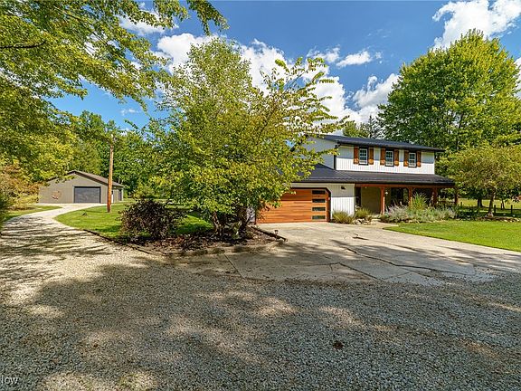Your dream country retreat awaits! A beautifully updated 3-bedroom Colonial, 4-car garage parking options, nestled on 4.33 peaceful acres includes a large outbuilding with concrete floor and an aeriated pond. Once you travel down the long picturesque driveway, you'll find a warm inviting farmhouse with modern updates. A welcoming foyer with a charming boot nook is the perfect place to kick off your shoes and settle in. The heart of the home is the spacious eat-in kitchen, where granite countertops, stainless appliances, and pantry make cooking and gathering a joy. Relax in the inviting living room, accented by a built-in decorative electric fireplace and easy-flow LVP flooring that leads seamlessly into the spacious dining area and kitchen. Gather with friends in the family room, where another decorative fireplace creates a cozy atmosphere and sliding doors open directly to the backyard deck, pergola, and firepit. A convenient half bath finishes off the first floor. Upstairs, three comfortable bedrooms and a full bath for everyone. The primary suite includes a decorative wood wall, a walk-in closet, a second closet and a dressing area. The partially finished basement gives you even more room to spread out-whether for a playroom, home gym, or extra storage.