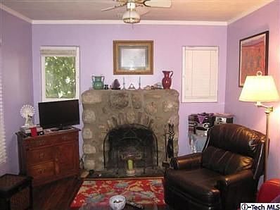 PRICE REDUCED! Charming 1BR/BA with original stone fireplace, mostly hardwood floors, updated tile bath, a bright, eat-in kitchen, full copper plumbing, partial dual paned windows (2012), a new(2011) completely finished and permitted 2-car garage, good for office, workspace or storage, porch with mountain views in front & back, mature trees and a peaceful, wistaria-laden garden patio. Owner-cared for the past 18 years, all on a quiet street close to markets, parks, restaurants, transportation, and located in the Blue-Ribbon Glendale Unified School District!