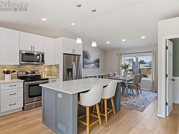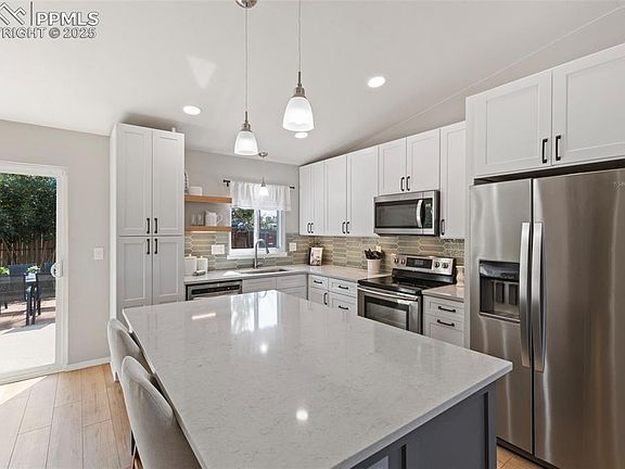 Step inside and be impressed! This beautifully updated home offers modern finishes, flexible living spaces, and a 3-bed, 2-bath floor plan you will love! Brand-new flooring, fresh paint, and updated lighting set the stage, while the fully remodeled kitchen steals the show with its quartz counters, large dining and serving island, new soft-close doors and drawers, trendy new backsplash, and an easy walkout to a back patio with decorative stone pavers. Both bathrooms shine with stylish updates, and the stacked washer and dryer are yours to keep! The backyard is fully fenced for privacy with a newly seeded lawn that will be ready to enjoy very soon. Two separate living areas offer incredible flexibility. The main-level space is currently a formal dining room but could easily serve as a comfortable living room, while the lower-level family room with wood-burning fireplace could be the perfect playroom, workout space, or media room. Central air keeps summers cool, and the attached two-car garage offers extra room for a workbench or storage. Located in the sought-after Academy District 20, known for excellent schools, beautiful parks, and quick access to shopping and dining. This home is significantly more updated than other nearby listings, offering modern finishes, flexible spaces, and a move-in ready presentation that stands out in the market. It is a rare opportunity to get a fully updated and affordable home in one of the most desirable districts in the area. Enjoy neighborhood walking paths, nearby open spaces, and easy access to the breathtaking Front Range views that make this part of Colorado Springs so special.