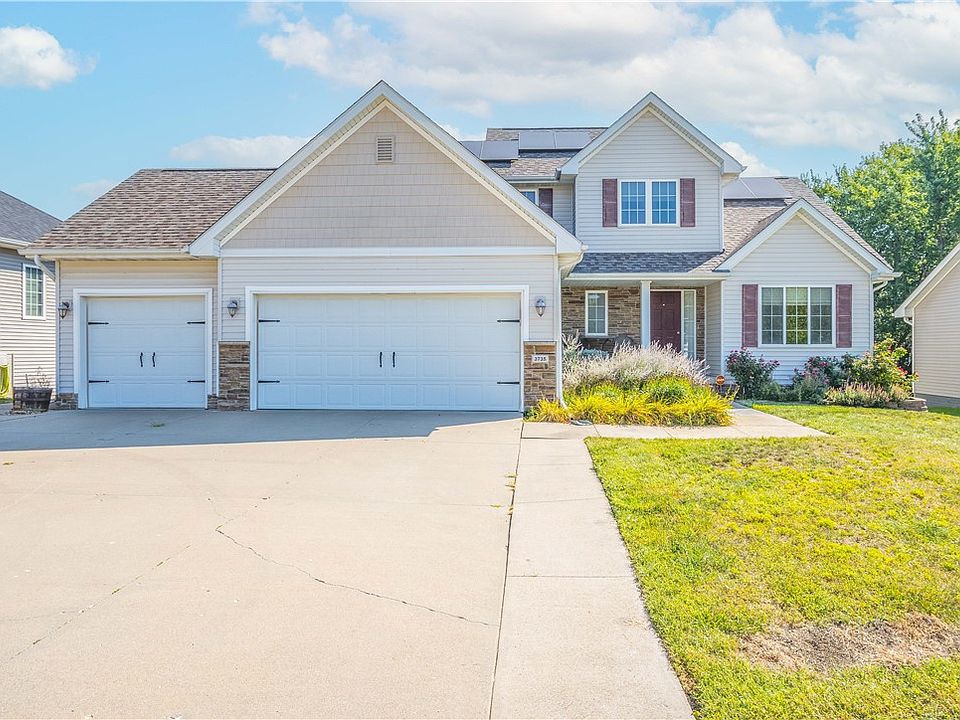 Location, location, location! This home is close to SEP schools, Cooper Creek Golf course and only 10 minute drive to Downtown or Ankeny. Spectacular layout in this 1.5 story 4 bedroom home with an open concept with tons of natural light from the large windows and vaulted ceiling. Added bonus is the Primary suite located on first floor! Included in first floor is the wonderful fireplace in the living room. Upstairs includes 2 large bedrooms with tons of closet space and a full bathroom.Finished basement offers a fantastic bar with a speakeasy feel, perfect for entertaining. The lower level also includes a full bathroom and the 4th large bedroom. Wonderful back yard that is set up for great entertaining with an oversized deck, a concrete patio with fire pit and bonus storage built in under deck.UPDATES INCLUDE; Fresh paint on main level, new carpet in lower level, security system with cameras, and solar panels installed to mention a few. Solar panels reducing energy costs over $100/month est. All information obtained from Seller and public records. 2023-09-29