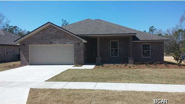 New construction in just opened Cedar Park offering easy access to greater Panama City, Panama City Beach, and TAFB! All brick home offers great room with 10Ft ceilings, dining room, kitchen with island, solid surface counters, and stainless appliances, master suite with tray ceiling, double vanity, separate shower and tub, walk-in closet. Other interior features include tile flooring, recessed lighting, custom cabinetry, and ceiling fans...Exterior includes brick siding, 2 car garage, covered porch, and sprinkler system. Cedar Park features landscaped entrance, two parks, pavilion, playground, underground utilities, custom street lighting, and sidewalks.