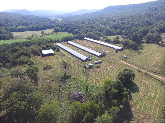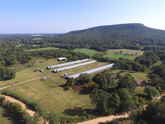 Just under 23 acres with about 18 acres open pasture around 3 poultry houses (not in use) older mobile home that needs work, pond, 60x70 red iron litter shed, well with holding tank, backup generator, nipple waters, feedlines, tube heaters, cool cells, 6 feed bins (4 are newer) located a few miles South of Green Forest with county road on 2 sides and Ozark Hill views all around. Close to Eureka Springs AR, Branson MO, Table rock lake, Buffalo River, and Kings River. Property Selling AS-IS.