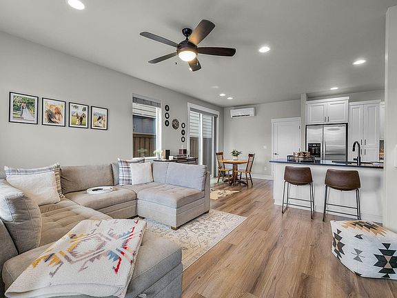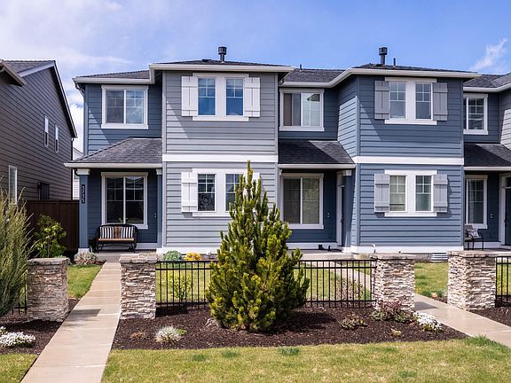 Welcome to Parkside, the pinnacle of NE living in Petrosa Community by Pahlisch Homes, Bend's newest sensation. Homes boast high-end features redefining modern luxury. Vaulted ceilings create an expansive ambiance while the primary suite offers unparalleled comfort with dual sinks and a walk-in closet. This End Unit offers a spacious loft, illuminated by skylights, and is perfect for relaxation or entertainment. Warm yourself by the gas fireplace adorned with designer tile. Smart home integration enhances lifestyle with seamless technology. The open-concept design seamlessly integrates the kitchen, dining, and great room. Bright white cabinetry, Quartz counters, and luxury vinyl plank flooring elevate each space. Meticulous attention to detail ensures optimal insulation and energy efficiency. Enjoy front yard landscaping, sliding glass doors leading to a small private patio, AC, and access to private recreational amenities. Petrosa, where luxury meets lifestyle in perfect harmony.