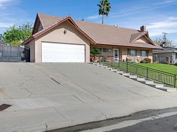 Take a look at this beautiful 2-story home near Bakersfield Country Club, with 4-bedrooms, 2-bathrooms, and a detached shop! Heading through the front door, you will have the large formal living and dining area. The kitchen is equipped with granite countertops, SS appliances, and a resurfaced ceiling w/ updated light fixture. The main living area has tall ceilings, a full wet bar w/ mini fridge, and an elegant brick fireplace. Each bedroom comes with carpet, ceiling fans, and spacious closets. There is a large built-in desk upstairs, as well as an extended storage room. In the backyard, you will see the covered patio area, RV parking, detached shop w/ roll up door, large amount of grass area, as well as luscious landscaping. Do not miss your opportunity to call this home, schedule your private showing today!