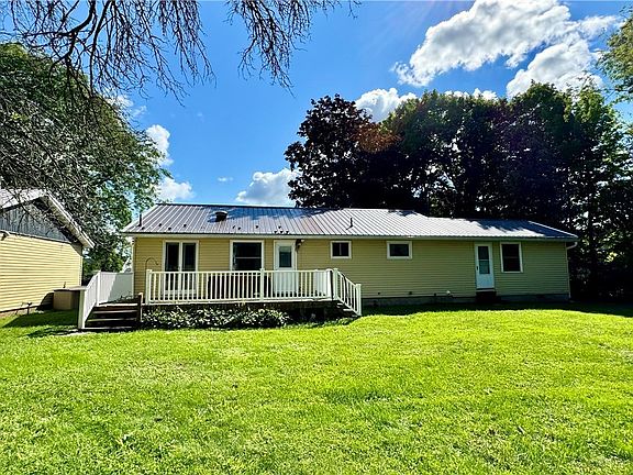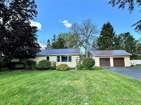 Come see this country ranch home located just a few miles from the village and Skaneateles Schools. You will find a spacious living room, kitchen, and dining room as you enter the home. The dining room and kitchen have doors that lead to a back deck overlooking a lovely backyard. Although one of the three bedrooms has been converted to a first-floor laundry, it can easily be converted back. The furnace and central air conditioning unit are less than five years old. The home has had some updated electrical and plumbing work done. It features a metal roof and vinyl siding. Additionally, a one-bedroom apartment is in a converted detached 2-car garage. The apartment has its own electric meter and includes a spacious bedroom, living room, kitchen, and full bath, offering potential rental income or in-law space. The apartment can be rented on a short- or long-term basis. The owner has successfully managed it as a VRBO listing. Behind the home is a large storage shed perfect for a car, lawn equipment, or workshop area. The shed is equipped with electricity. This home is connected to public water and natural gas, which is uncommon in rural settings.