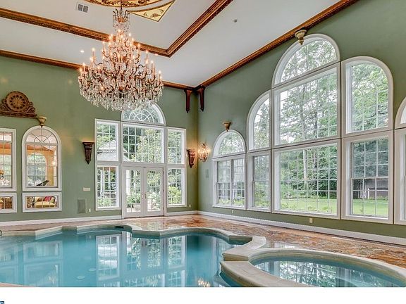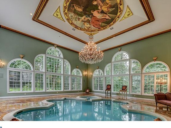 In a time of SOCIAL DISTANCING this multifunctional suburban 2 acre estate provides the perfect combination of indoor and outdoor living spaces so you and your loved ones can shelter in place with an Indoor Pool/SPA, Atrium, Home Theater, Gym, Dynamic Office/Library to work from home, Expansive Outdoor Kitchen, Covered Gazebo for dinner parties and plenty of Green spaces. All of this provides ample social distancing without leaving the main Gates of the property. Not having to go into an elevator to go outside is life-changing. Minutes to downtown Princeton, Princeton University, within a 3 mile radius to the most elite private schools and steps to the 19 mile Lawrence-Hopewell trail for biking,running and with easy commute to NYC and Philly, this regal 5 bedroom combines Old World glamour with a profound sense of privacy.Idyllic outdoor living features a Viking and granite kitchen, a dinner-party gazebo with a vintage slate floor, and a seamless connection to the home's indoor Roman pool and vaulted solarium - all poised to take in tranquil views. Top stainless appliances, a pull-up island, and a sophisticated mix of cabinetry and stone customize the designer kitchen. The library is quiet but dynamic with its coffered ceiling and tiger-striped bamboo floor. Special evenings can be celebrated in the fireside living room and a dining room upholstered with peacock-embroidered fabric, then perhaps ending with a film in the finished basement's fully-equipped home theater. Burnished hardwoods gleam upstairs, where 3 of the 4.5 baths and all 5 bedrooms are located. Cathedral ceilings and a gas fireplace add atmosphere to the master suite; a sunburst window perches over the bath's clawfoot tub