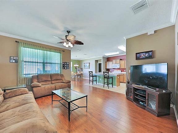 Don't miss this one! 4 Bedroom home awaits new owner! Sits on a huge corner lot! Walk into this bright and open floor plan and you have the family room that has beautiful laminate wood floors and crown molding. This opens up to the kitchen with lots of cabinets for all your cookware. You also have a huge kitchen nook. Walk into the master bedroom and you have his and hers closets. The glamour master bathroom has double vanities with separate shower and garden tub. This is a split plan and the other 3 bedrooms are very spacious. The second bathroom has double sinks! The inside laundry room leads you to the HUGE bonus room that could be a 5th bedroom. House was freshly painted outside in January this year. Great location. Close to I4 and all the shopping and restaurants you want! Make your appointment to see today!