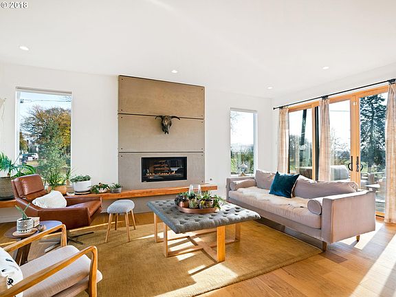 AMAZING contemporary remodel on an oversized lot! 4 beds 3.1 baths, almost 3700 sq ft. Gourmet kitchen! Wood, cork and tile flooring. Modern fireplaces to cozy up to! View of the river, bridges, city and west hills! Beautifully landscaped yard but next to Overlook Park where you can exercise and run the dog. A block from the MAX line to zip downtown or to the airport.