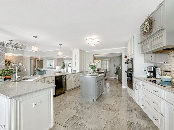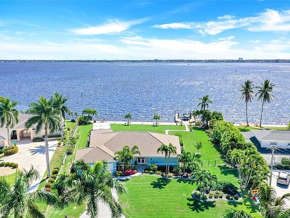 This perfect home is located on one of the largest, most spectacular riverfront lots in all of Cape Coral. This estate size lot features over 170 feet of water frontage, on 2/3 of an acre of land. The home has never flooded in any of the storms. This home was completely redesigned from top to bottom in 2019. New tile roof, new electrical panels, new impact front doors, windows and sliders. The kitchen and bathrooms were renovated to the highest standards. The living area flows together and maximizes the views and the natural light. All appliances are top of the line, Wi-Fi enabled. The flooring is beautiful marble tile throughout. Everyone will appreciate the custom finishes and high-end touches throughout this house. The outdoor space is incredible! There is a dedicated pool bath for outdoor entertaining. The pool deck area matches the indoor tile for continuity of design and there are fire features and waterfalls at the poolside. You'll find numerous spots to soak up the sun and there is a covered pergola with a rain sensor roof which opens and closes automatically. The huge dock features a 40,000 lb. lift & composite decking. When it is time to unwind, grab your pina colada and head to the sandy beach to relax! The owner will offer financing to a qualified buyer.
