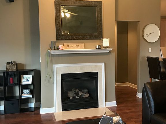 Open floor plan and high vaulted ceilings in this top floor condo. Located just across from the pool and clubhouse! Hardwood floors throughout the main section with tile in kitchen and baths. All appliances included along with washer/dryer and brand new water heater. Living room includes a gas log fireplace and overlooks covered balcony patio. 1 car attached garage with additional parking spaces. Amenities include private clubhouse with exercise room,pool,hot tub and entertaining areas and a private lake. Condo fees includes trash,sanitary,snow removal,lawn care, insurance on the structure and maintenance on the exterior. Make this condo a must see.