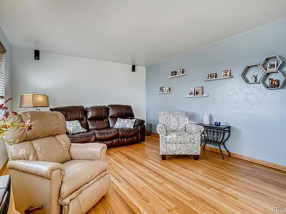 Located on a spacious corner lot, pride of ownership shines throughout this lovely brick ranch home in Rangeview Acres. The main floor features 3 beds, living room, kitchen w/breakfast nook and a full bath. The finished basement features 2 non-conforming bedrooms, 3/4 bath, family room and laundry w/storage shelves - perfect for guests or teen wanting their own space. This home lives larger than it looks. The energy efficient furnace, central air and ceiling fans keep this home comfortable all year long. Newer energy efficient windows & sliding glass door. The backyard shed provides even more storage space. Enjoy warm summer evenings on the deck or people watching from the front cobblestone porch. Mature trees provide ample shade in front and the backyard gardens are sure to please. Oversized driveway pad for extra parking. Charming inside and out. This home is move-in ready! It is easy to picture yourself calling this one home. No HOA! Close to dining, shopping, entertainment and other amenities. Easy access to Highway 36. A short commute to Broomfield, Thornton, Denver, Boulder and beyond. Don't miss your opportunity. Welcome Home!