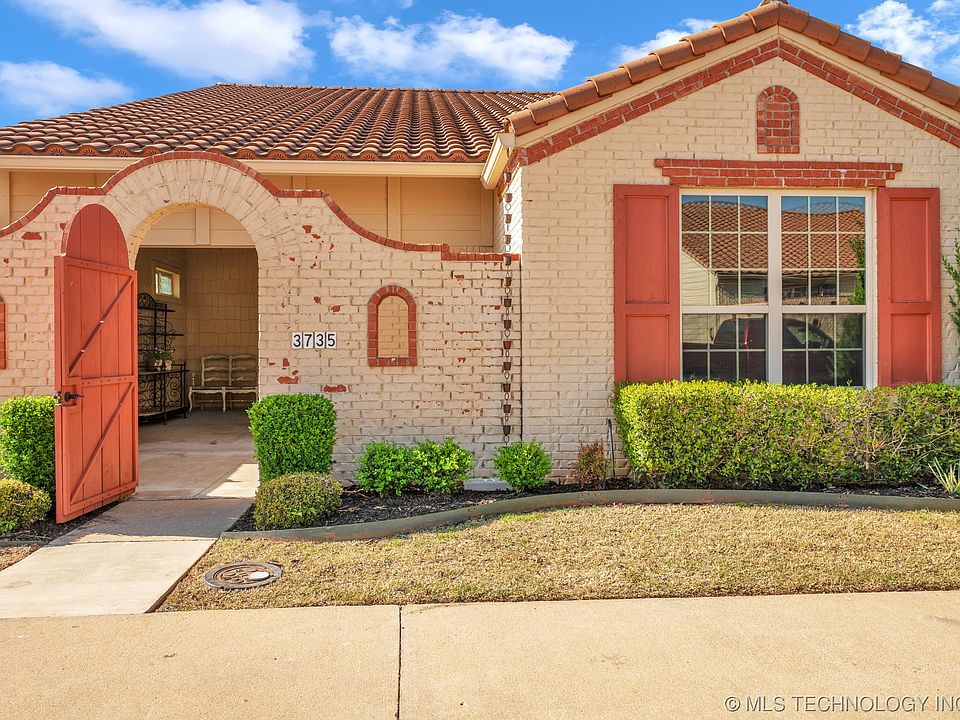 Luxurious single story patio home in the popular gated community of Mission Gardens in Broken Arrow. Let the HOA take care of the yard maintenance and landscaping and enjoy the low maintenance of the tile roof. This home has been meticulously maintained and cared for. Upgrades include plantation shutters, gorgeous beamed ceiling, hand scraped wood floors, custom moldings, granite countertops and Bosch appliances. Open concept layout perfect for entertaining with 1/2 bath for guests. Living room with cozy fireplace with ventless gas log system and vaulted ceiling. Huge primary bedroom with ensuite featuring double vanities, separate whirlpool tub and closet with seasonal storage. Enjoy evenings on your private patio or in the neighborhood courtyard. Easy access to the Creek Turnpike and expanding retail options in south BA. This is a must see!!! Square footage per recent appraisal.