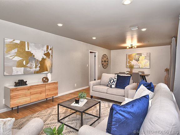 Beautiful Ranch style home in the bustling city of Tulsa, Oklahoma! Nestled in a vibrant Midtown neighborhood, this charming property is now available for you to call home! Convenient location, lovely original features & great updates. As you arrive, you'll be greeted by a well-maintained exterior, featuring lush green landscaping, an inviting porch with custom tiled floor & wood trim accents. Step inside and be immediately drawn in by the warm inviting atmosphere this home provides. The main living area boasts an abundance of natural light creating an airy & spacious feel. Light blonde floors easy to maintain flow throughout, fresh neutral paint & custom recessed lighting with dimmer switches add a touch of timeless elegance. The open concept design allows for seamless connectivity between the living room, dining area & kitchen, making it ideal for entertaining. The family room offers a built-in bookcase & brick fireplace for those cozy Fall nights. The kitchen has ample granite counter space, modern stainless appliances: Bosh Dishwasher, Built-in Oven, Cooktop & Frig, plenty of storage options with its sleek cabinetry & rolling island that can be easily moved. Washer & Dryer included! The bedrooms are generously sized, providing plenty of closet space. The hall bathroom features a large double sink vanity with quartz & gorgeous tiled shower with bench. Enjoy the outdoor living, fenced spacious patio & backyard. It offers endless possibilities for relaxation, gardening, or even setting up a play area for children. It's the perfect spot for enjoying barbecues, hosting gatherings, or simply unwinding after a busy day. The workshop attached to the house is heated & 2 cedar closets in the garage. Walking distance to Patrick Henry Elementary, near Thomas Edison, University of Oklahoma, parks, shopping centers, restaurants, & entertainment options. Commuting is a breeze with easy access to major highways. Owner/Agent