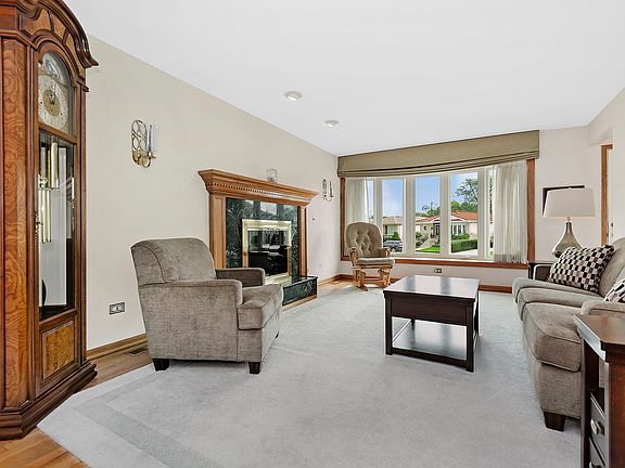 Move right in to this immaculate 3 bedroom and 3 full baths brick raised ranch on 40x125 lot located in a private cul de sac! This meticulously maintained home on quiet street welcomes you with a bright living room filled with natural light from new bow window and has marble gas fireplace. The large formal dining room leads to three generous sized bedrooms with wide closets and two full bathrooms on first floor. Plenty of room and counter space in the eat-in kitchen with beautiful wood cabinetry, breakfast bar peninsula and pantry closet. This spacious kitchen has a new custom picture window offering open views of yard and has a back door entry to 2 1/2 car garage with side driveway. Expansive full basement has huge open recreation room, large storage room or potential for office/4th bedroom, a full bathroom and the workshop/laundry room provides extra storage space with a separate exterior entrance. The inviting backyard with cement patio and shed is ready for your outdoor entertaining, gardening and relaxation. Very convenient location blocks to schools, public transportation, minutes to shops, restaurants, Shabbona Park, HIP shopping center and more!
