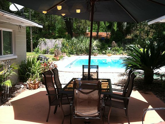 Sturdy, concrete block pool home located only 1 mile to UF! Lots of room to spread out with separate family room and living room. Open floor plan with tile, laminate wood and wood flooring (no carpet anywhere). Home includes an apartment with separate entrance and separate water heater. Apartment is perfect for an in-law suite or student rental. New, energy efficient, double-paned windows in bedrooms. Reverse osmosis water purification system for the kitchen sink, refrigerator and ice maker. Relax by the large brick fireplace. Spacious, private patio area with pool deck, refreshing in-ground pool and large wood deck. Fully fenced backyard with 2 storage sheds. Quiet neighborhood with private park and walking trails. 1 year home warranty included!
