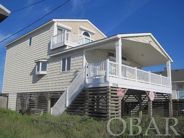 This SEMI-OCEANFRONT has UNOBSTRUCTED GREAT OCEAN VIEWS!! The dune walk-over to the beach is about 75 feet from the driveway. Sitting on this front porch and rocking in those chairs or having a meal on the picnic table will have you reminiscing of serene beach memories or making new ones. This home is not a reverse floor plan so those that don't want to climb to the top floor for the living area and kitchen this home is for you! There are 2 bedrooms, 2 baths, laundry closet, kitchen, 2 dining spaces and the living room space area are on the first living floor. On the top floor there are 3 bedrooms and 2 bathrooms. Outside there is a hot tub, outside shower and toilet along with 2 park grills and a fish cleaning table. The rentals for this home are managed by the homeowner but really it manages itself with 21 (yes, 21!!) repeat guest weeks for 2022. Rental weeks have been limited to what is convenient for the homeowner.