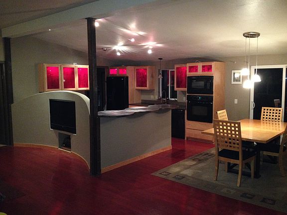 Amazing Home 3 Bedrooms, 2 Full Baths, This beautiful home has a huge yard and 4 car garage/shop that has to be seen the home sits on 2 lots. This home has been redone inside has beautiful bamboo floors throughout, custom Tharp cabinets with designer glass that are back-lit, Copper sink and copper faucet, Custom peninsula for entertaining, top of line appliances, exposed beam design, Master bedroom is huge with master bath that has to be seen, jetted tub, copper touches, double sink the works. The bedrooms in this home have plenty of room for all of your furniture. The front porch is perfect for relaxing and enjoying the sunsets. The detached garage can be used as a shop it has room for 4 cars