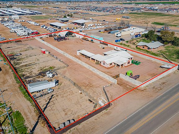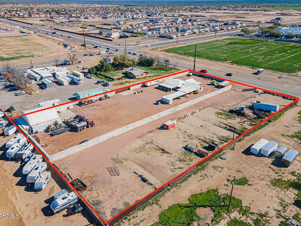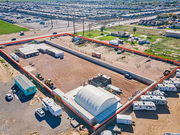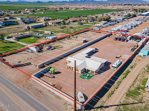 Discover 2.6 acres of [CI-2] INDUSTRIAL ZONED land in San Tan Valley. This property features a 2400 Sq Ft epoxy coated concrete pad (Six inches thick) that is lined with three 40ft by 8ft shipping containers. All containers have electrical ran to them, with one including a fully built-out office with a kitchen and bathroom. This property includes four contractor lots with below-market rents and three vacant lots with income potential. Additionally, there's a 2,535 Sq Ft residential house with a three-car covered carport that has a 20ft by 8ft container placed conveniently on the end. Explore endless possibilities with this prime commercial land, from rental income to development potential in the growing town of San Tan Valley.